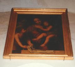 Inventaire du mobilier de l'église Saint-Pons de Sausses - 1991 (4) - Tableau "Saint-Blaise et Saint Joseph aux pieds de la Vierge et l'Enfant"