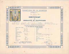 Chantier de la jeunesse - Certificat de moralité et d'aptitude - 1942