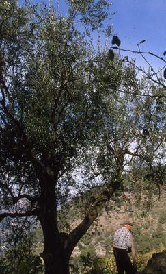 Transport d'un fagot d'olivier et de genêt à la Roquette-sur-Var.