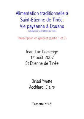 Alimentation traditionnelle à Saint-Etienne-de-Tinée - Vie paysanne à Douans - TRANSCRIPTION de la cassette n° 48 (partie 1 et 2)
