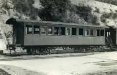 Voiture de 2e classe B502, modèle (Descouches & David 1891) en gare d'Annot, 1942. Photo Laurent P. Fonds Marcel Cauvin. Coll. Roudoule.