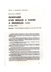 Inventaire d'un moulin à papier à Brignoles (Var) - 30 mai 1491