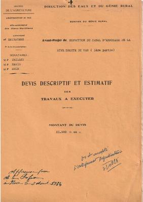 Avant-Projet de réfection du canal d'arrosage de la rive droite du Var (1ère partie) - 1934- Devis descriptif et estimatif des travaux à exécuter (9/9)