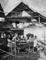 [La famille Liautaud sous les tilleuls de la ferme de Chastelonnette - 1943]