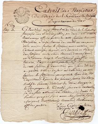 Vente par Richelmi Jean-Baptiste à Pierre Salicis - Péone - 1816