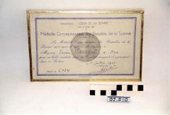 Diplôme de la médaille commémorative de la bataille de la Somme