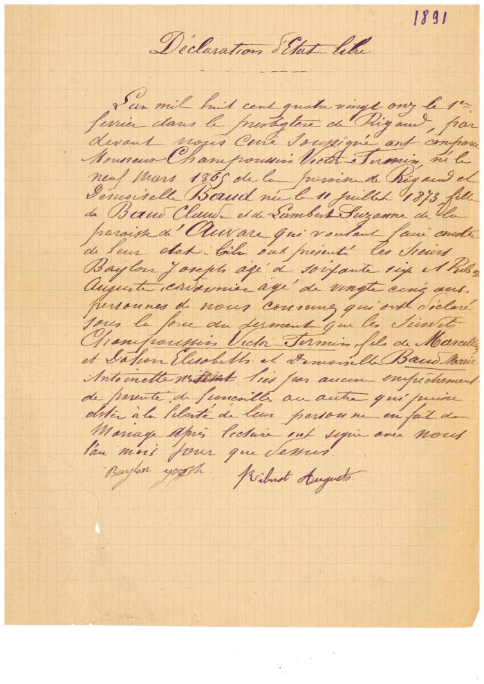 Déclaration d'Etat libre 1891