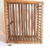 Description : Deux rectangle de bois assemblé à demi bois réuni entre eux par des barreaux de bois espacé de 35 m/m. le fond est le dessus sont fait aussi avec des barreaux. Sur un des côtés au centre, se trouve une porte pivotante. (2 barreaux verticaux dont un pivotant et quatre barreaux traversaux)