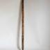 Description : Grosse canne en bois cintré pour former poignée (D : 4 cm) dans le haut et D : 3 cm à l'extrémité inférieure qui se termine par une pointe reliée par une virole.