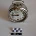 Réveil à cadran à chiffre arabe de 1 à 12. Présence de deux aiguilles.. Un double cercle gradué marque les minutes avec des traits fins. L'indication des cinq minutes est marqué avec un trait gras. Le cadran est protégé par un verre. Un cadran (D : 2 cm) gradué et marqué sans relief possède une aiguille se tournait dans le sens inverse des aiguilles d'une montre comme la flèche l'indique. Il permet de régler la sonnerie. Le réveil a une forme cylindrique. Il est muni d'une anse en arc surbaissé au sommet ainsi qu'un bouton monté sur le ressort pour stopper la sonnerie, ainsi que trois pieds. Le catalogue Manufrance caractérise ce type de réveil de genre américain. Au dos, se trouve deux remontoirs graduée muni d'un taquet permet en poussant à droite ou à gauche de régler le retard ou l'avance du réveil.