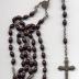 Description : Chapelet classique avec grains en noir en forme d'olive. Le point de jonction est assuré par une petite médaille (D : 1cm) représentant à l'avers la Vierge et l'Enfant et au revers la tête du Christ. La croix comporte en relief le Christ, la représentation de la mention INRI et à chacune de ces quatre extrémités la tête ailée d'un ange.