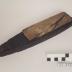 Un support en écorce, creusé au dimension de la pierre afin de la sertir. Il est de forme oblongue. Une pierre à huile (15,5 x 5 cm) s'encastre dans l'écorce. Elle est collée à ce dernier par de la résine.
