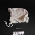 Coiffe dont la bordure est cousue avec une guêpière blanche. Celle de la base du bonnet est plus étroite que celle du devant et le feston de bordure est plus petit. Celle du devant est froncée. A la base de la coiffe coulisse un lacet plat dans un ourlet pour l'ajuster à la tête. Sur le devant deux lacets plats servent à tenir le bonnet en les nouant sous le cou. Derrière un lacet plat coulissait dans l'ourlet pour enserrer les cheveux. Un autre lacet plat glissait dans un ourlet pour serrer le bonnet.