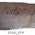 Description : Tuile ronde réalisée à partir d'une plaque trapézoïdale en terre. Elle est cintrée pour lui donner la forme d'une goulotte puis elle est cuite. Avant la cuisson, elle peut être gravée sur la face extérieure. La gravure peut être un dessin, un nom ou une date. Inscription : lettres gravées : "jikl" le reste est indéchiffrable.