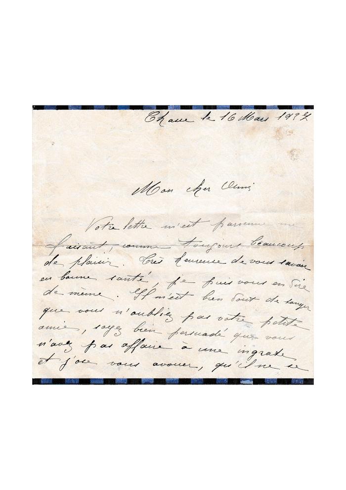 Lettre de Germaine Cèze écrite depuis le hameau de Chasse près de Villars-Colmars dans les Alpes de Haute Provence. Suite  d'une correspondance amoureuse avec Ollivier Prosper  qu'elle épousera le 19 octobre 1929. Elle demande à Prosper de ne pas s'inquiéter si son père tarde à répondre à sa lettre lui expliquant qu'il est très négligent pour écrire.