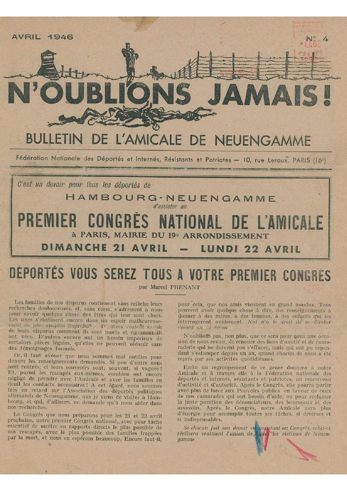 N'oublions Jamais ! Bulletin de l'Amicale de Neuengamme ➜ N'oublions jamais ! Bulletin de l'amicale de Neuengamme - N°4 - avril 1946