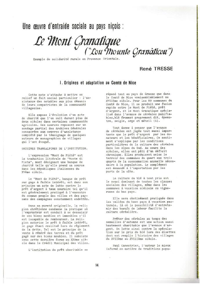 Une œuvre d 'entraide sociale au pays niçois : Le Mont Granatique ("Lou Mounte Granàticou")